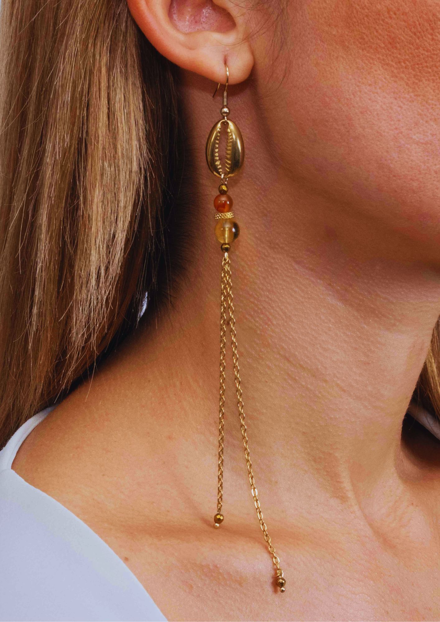 Découvrez nos magnifiques boucles d’oreilles ornées de cauris, un symbole ancien de prospérité et de protection. Ces pièces uniques allient la vibration des pierres naturelles telles que la cornaline, la citrine et les cauris.