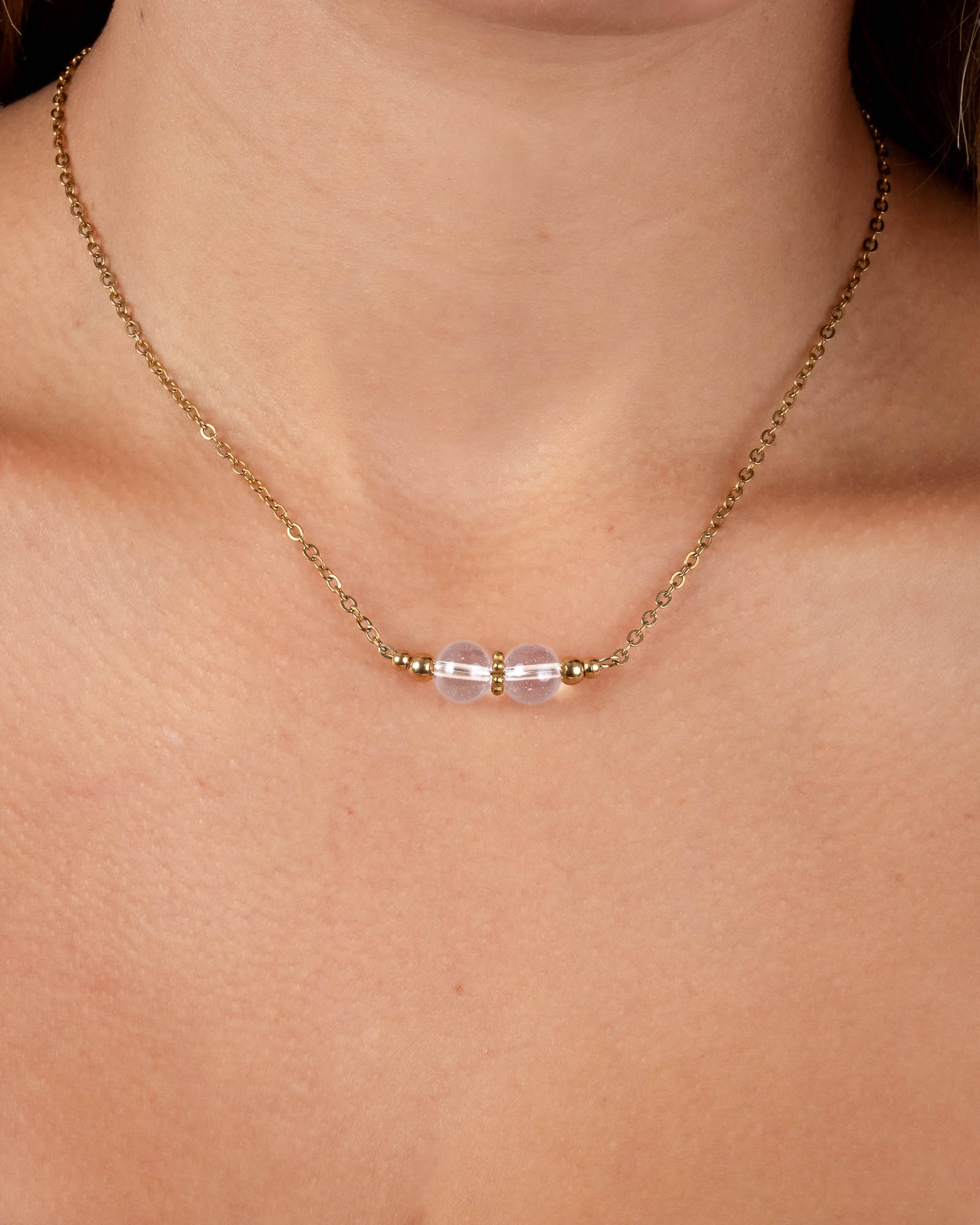 - Design minimaliste avec un collier simple de 43 cm composée de deux pierres naturelles
