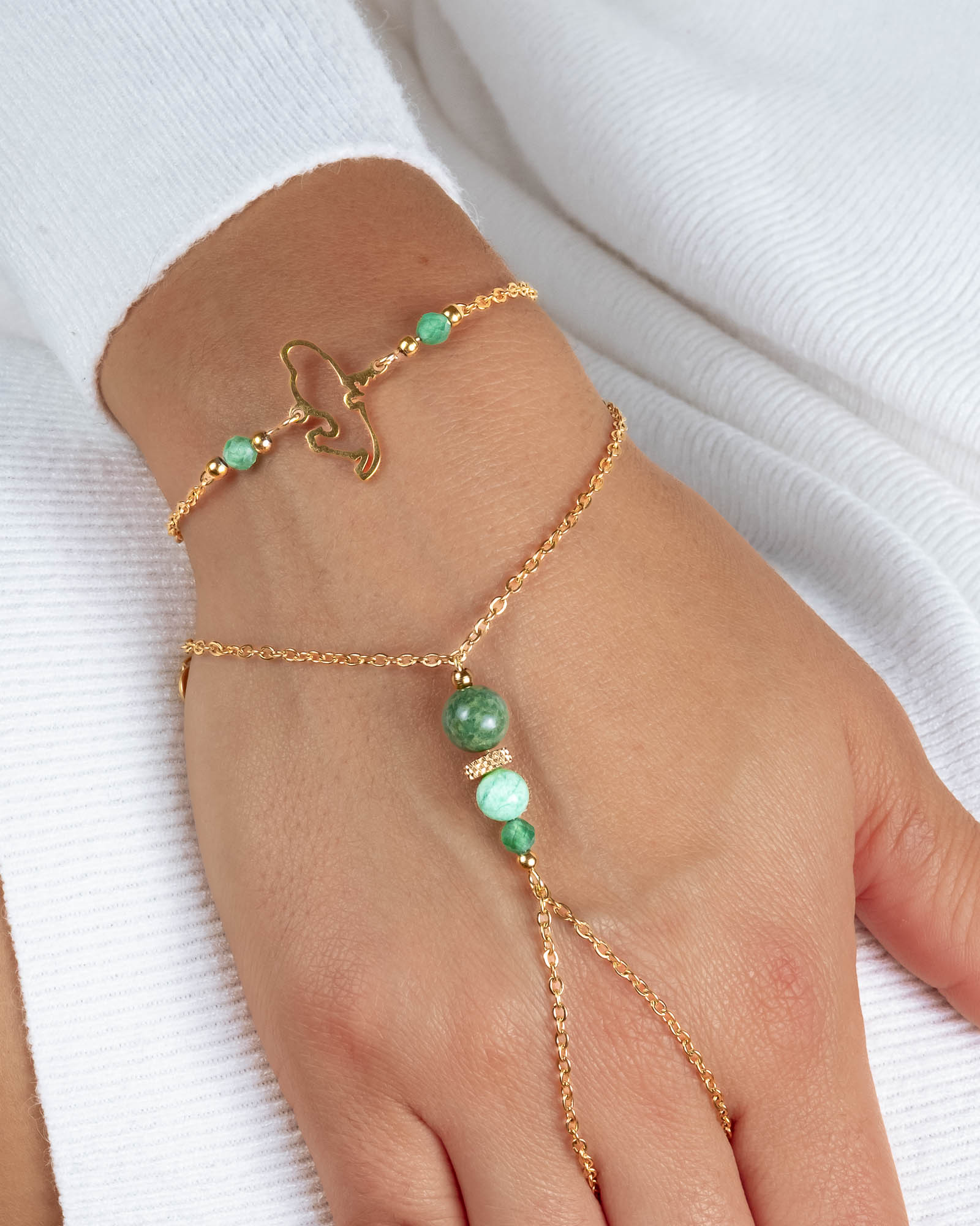 Découvrez une chaîne de main exceptionnelle, conçue pour mettre en valeur vos racines et votre attachement à la Martinique. Ce bijou en acier inoxydable est orné d’un pendentif en forme de la carte de la Martinique, représentant votre patrimoine culturel et votre fierté insulaire. Le design délicat de ce bijou en pierres naturelles utilisées en aventurine et jade verte en fait un accessoire parfait pour celles qui souhaitent combiner élégance et symbolisme dans leur style quotidien.