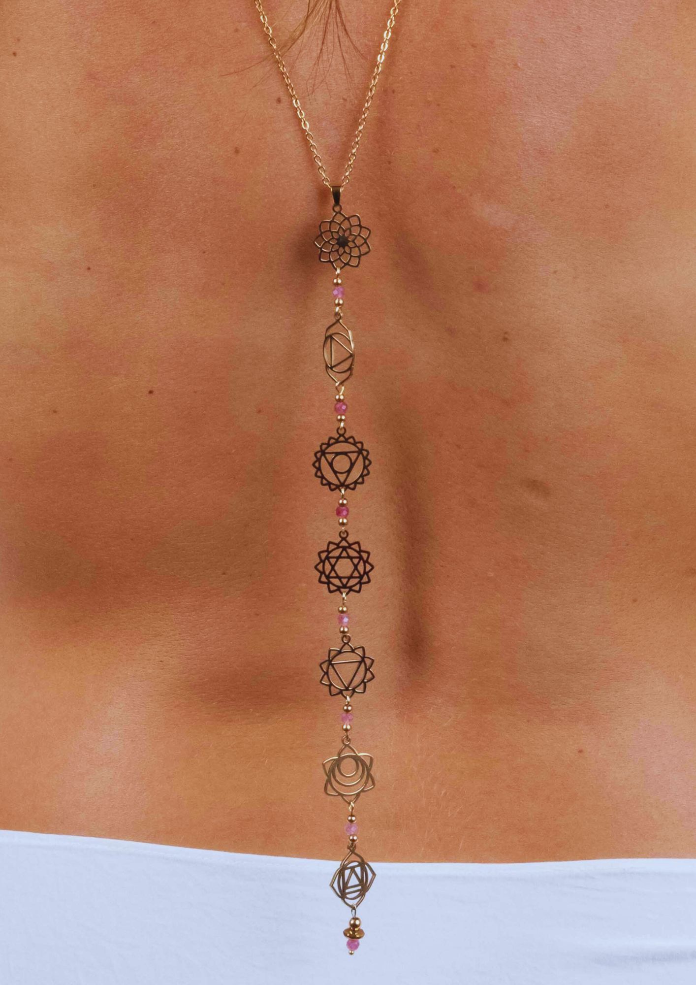 Orséis | Bijou de dos avec symboles des 7 chakras 🟡