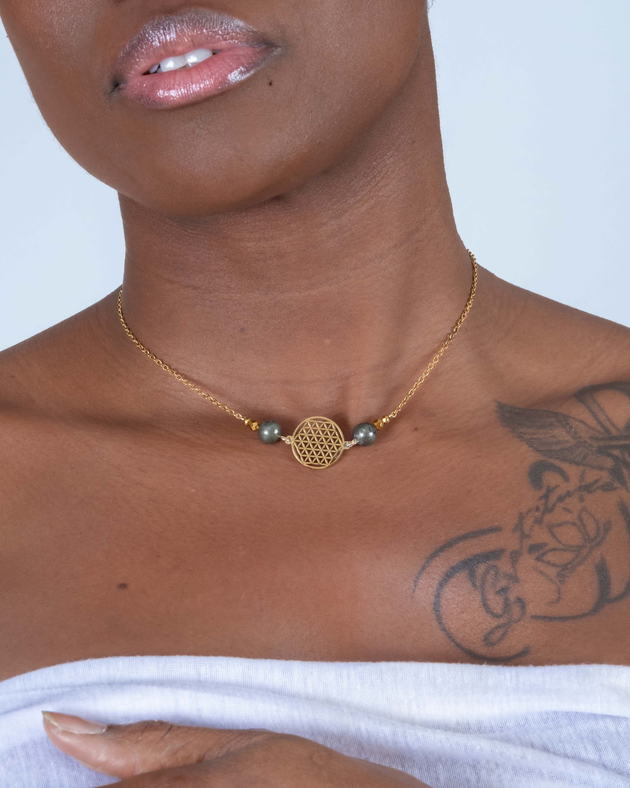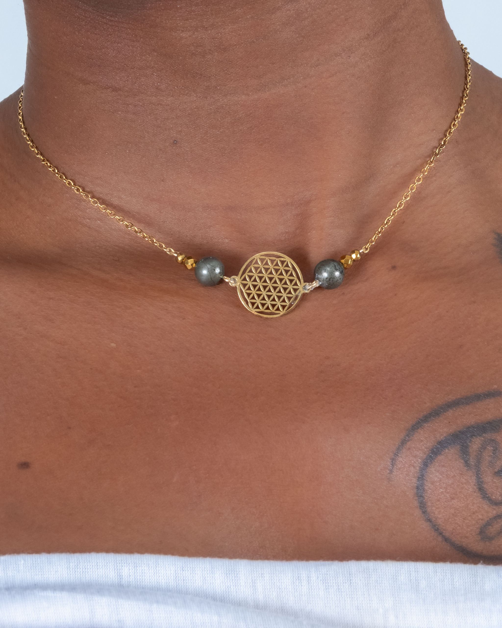 - Design minimaliste avec un collier simple avec une fleur de vie 43 cm